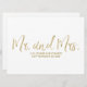 Um na moda com a letra do Sr. e da Sra. Sign NOTE __________________________________________________________________________________________________________ O ouro não é folha de alumínio real, é um efeito digital. Este é um sinal de 6,5" x 8,75", clicando no botão "personalizá-lo" que você pode acessar às ferramentas de design para alterar o tamanho e a forma, e também pode adicionar uma cor de fundo. Para combinar este sinal com o seu estilo de casamento, pode escolher entre 12 opções de papel únicas. Para uma sensação rústica, use a kraft artística, para adicionar um pouco de vidro, use o shimmer de pérolas. _____________________________________________________________________