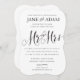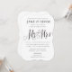 Típica simples, elegante, bela escrita a preto e branco, Sr. e Sra. Wedding Invices. Personalize-os aqui e agora online com os seus próprios detalhes de casamento. Basta digitar o exemplo acima, com os detalhes do convite do dia do casamento, e você verá as palavras mudando na tela imediatamente. Se quiser mover ou alterar o tamanho/posicionamento da fonte, etc..., clique em personalizar. Cada convite vem com um envelope branco de tamanho correspondente incluído no custo.