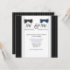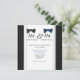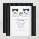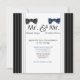 Este convite alternativo do casamento do chique caracteriza dois laços em uma camisa plissada com um fundo listrado pino. Personalizado facilmente com sua informação especial do dia. Laço preto e laço dos azuis marinhos. :: OS ENVELOPES INCLUÍRAM::
