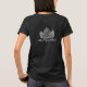 Esta camiseta feminina é mostrada em preto, com uma impressão de coroa branca e preta e um texto fresco e sujo na frente e atrás. Texto personalizado para personalizar com o seu nome, nome do concurso ou título.
