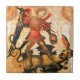 Impressão de alta qualidade, de alta resolução que descreve St Michael o arcanjo que massacra o dragão sete-dirigido do apocalipse. Artista Valencian desconhecido, século XV.