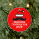 Staching através dos enfeites de natal da neve. Design engraçado do feriado do xmas com chapéu do papai noel e o bigode preto do guiador. Humor do Moustache.