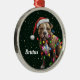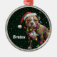 Um adorno de feriado divertido apresenta um cão Terrier americano de Staffordshire com Papais noeis bonés e luzes de Natal festivas. Adicione um toque personalizado com o nome do cão ou outra mensagem especial. Excelente de presente para amantes de cães!
