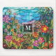 Bring an artistic touch to your desk with this personalized mouse pad featuring a vibrant flower garden design inspired by stained glass. A custom initial in a modern framed monogram add a personal touch — perfect for yourself or as a thoughtful gift.