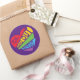 Um belo e colorido adesivo do orgulho LGBTQ com uma ilustração do coração do arco-íris com a citação "Vibrante junto - Saia, fique orgulhoso". Com este adesivo de consciência do orgulho, você pode espalhar alguma igualdade e mostrar ao mundo que você é um orgulhoso membro da comunidade LGBTQ.