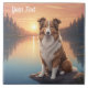 Collie Standard castanho e branco sentado ao lado de um lago ao pôr do sol. Adicionar esta imagem a outros produtos. Adicione seu próprio texto também. Muitos animais na minha loja.