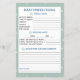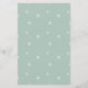 Elevem a alegria em seu chá de fraldas com nosso encantador Jogo Predições do Bebê apresentando um Padrão de Estrelas de Aquarelas Verdes Salgadas. Esse jogo encantador permite que os hóspedes compartilhem suas previsões e conselhos para a chegada futura a um ambiente balbucioso e animador. As suaves matizes verdes, combinadas com as charmosas estrelas aquáticas, criam uma atmosfera de calor e alegria. Torne o seu chá de fraldas ainda mais memorável com este jogo exclusivo. Você pode facilmente personalizar os textos que estão em uma simples tipografia moderna. Explore a doçura deste design e faça do seu chá de fraldas uma ocasião memorável. Procure os outros produtos desta coleção no meu compro; Designs Gulden.