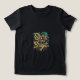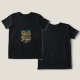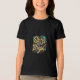 Um design de camiseta colorido e cósmico que apresenta a frase "Brilho brilhante nas estrelas" num arco-íris vibrante de matizes. Estrelas de vários tamanhos e cores estão espalhadas ao redor do texto, criando uma atmosfera lúdica e celestial.