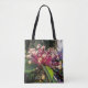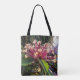 A bela imagem neste Tote Bag é uma fotografia original de ZoeSPEAK de um arbusto de clerodendrum florescente. Essa variedade é chamada de Starburst, porque cada floração é feita de caules magenta estourando, com pequenas flores brancas nas pontas. O Starburst é cercado por um aglomerado de folhas verdes e um fundo verde tropical. Esta planta floresce no final do inverno, mais confiável que um moinho.