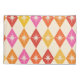Este é um belo Meio século de rajadas modernas em diamantes de harlequin retrorados em laranja, vermelho, amarelo e rosa sobre fundo bege. É excelente decorativo para sua casa como travesseiro