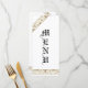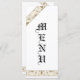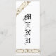 Este menu de casamento é decorado com as cores Starfish e Whitecap Cinzas em bares damask sobrepostas a um fundo branco.