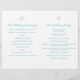 Simples desenho em branco e azul de uma estrela-do-mar/litoral, com ondas gráficas, Belo verde-azul-aqua em um programa de casamento de cores costeiras brancas. A design de casamento do estilo moderno estilo praia fascinante, parte do conjunto de papéis de carta de casamento no mar. Bonito sombras pastel. Edite estes programas de casamento com seu próprio nome de festa de casamento, datas, texto da cerimônia, assistentes de festa de casamento e obrigados. Um programa simples, mas elegante, simplesmente substitua o texto de amostra pelos detalhes de suas informações de casamento e dobre programas ao meio na entrega. Um programa perfeito de casamento para uma praia, inspirado no oceano costeiro, ou casamento de destino do mar. (Observe que o tamanho final será metade do tamanho quando dobrado). Desenho e design exclusivos por Sarah Trett. www.sarahtrett.com para www.mylittleedenweddings.com