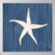 Um peixe-starfish de vintage em creme e branco é colocado sobre um fundo de conselhos de madeira antigos pintados em azul de cobalto para fazer um impressão ou poster de praia excelente para o seu espaço de sensação à beira-mar. Itens correspondentes e muitas outras designs de praia estão disponíveis na minha loja Zazzle.