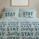 Whether you're salty from the sea breeze, or full of salty attitude, this coastal blue graphic print pillow case is a unique way to show off your love for the beach and bring the ocean into your bedroom decor. Teal lightly distressed vintage and modern fonts, set on coastal blue, create a playful statement. The pillowcase is reversible so you can enjoy two different looks in one. Perfect for beach houses, surf shacks, and coastal condos. Channel more beach days with this comfy home essential. The matching reversible duvet cover is sold separately in my store. This listing includes the pillowcase only.