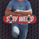 PASSE WEIRD em negrito texto em formato de skate. design de conselho de madeira legal para rapazes e raparigas. Boa ideia de presente de aniversário para crianças. Personalize com seu próprio nome, citação engraçada ou letras monográficas. Ideia única de presente de aniversário para filho de skater, neto, sobrinho, primo, filha, irmã, irmão, amigos, namorado, namorada etc. Grande design de tipografia de letras com cor de fundo vermelha personalizável. Também é bom como o Natal presente para crianças e adultos. Faça o upload de seus próprios logotipos ou gráficos do skateboarder opcionalmente.