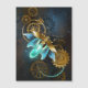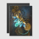 Barbeiro véu com asas transparentes azuis e lâmpada verde sobre fundo vestido, marrom, texturizado. Estilo Steampunk.
