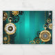 Joias, relógio de ouro com uma corrente de ouro e teclas num fundo textural verde. Estilo Steampunk.