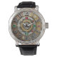 Vintage industrial, Steampunk Watch estilando com números grandes facilmente visíveis. Rosto de relógio original com ouro, diamantes, esmeraldas, pedras rubis e signos astrológicos/zodíacos circulam. (o fundo de observação é impresso / não contém gems reais).