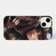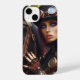 Um espantoso cavaleiro vitoriano-vitoriano cavaleiro escuro, com olhos azuis piercing, cabelos vermelhos, óculos e chapéu de topo, fica alto ao lado de seu magnífico cavalo preto em roupas de couro com engrenagens de relógio em um reino histórico steampunk.