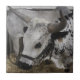 Um azulejo cerâmico com fotografia de um boi avistado.