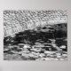 Ponte de pedra bonito sobre um cheio de lagoa de água lírios preto e branco poster impressão. Fotografia natural de Susan.