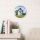 Wall Clock, Moldura de madeira branca redonda de 25,4 cm