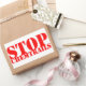 Adesivo que alerta os riscos dos rastros químicos às pessoas.