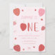 Convite para o primeiro aniversário do Berry para Arco de menina e primeiro aniversario de morango | Coleção de ICHIGO É seu primeiro aniversário 🍓 planejando uma festa de primeiro aniversario? Reúna família e amigos com um convite de primeira festa de aniversário de amora DIY personalizável. Edite facilmente o seu convite para o primeiro aniversário, cor-de-rosa e morango vermelho, editável, com todos os detalhes da festa de aniversário do tema morango para o doce de fruta com um ano de idade. Esta edição do primeiro convite de aniversário de morango cor-de-rosa dá o tom para o seu tema de morango na primeira comemoração de aniversário. A Coleção ICHIGO apresenta uma rosa claro de fundo com rabiscos de morangos em vermelho e rosa, além de arcos desenhados à mão. UM é soletrado com um morango e letras desenhadas à mão em vermelho. Letras, serif e sans serif tocadas em vermelho e rosa com todo o texto editável completa esse convite de festas de primeiro aniversario de morango. Perfeito para o tema do primeiro aniversario de verão de uma menina!