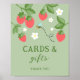 Welcome your guests with this adorable Berry Sweet strawberry cards and gifts sign! Featuring hand-drawn strawberries, cheerful white daisies, and a buzzing bee on a soft green background, this strawberry-themed party sign adds the perfect touch of charm to your gift table.