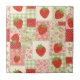 Vintage strawberry patchwork pattern ceramic tile with red gingham, soft florals, and cozy cottage charm. A warm, cheerful design ideal for strawberry lovers, farmhouse decor fans, and cottagecore enthusiasts. Perfect as a thoughtful gift for bakers, gardeners, moms, or anyone who loves retro kitchen style—especially for spring, summer, picnics, and farmhouse-inspired occasions.