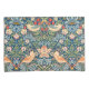 Esta design baseia-se num padrão criado pelo designer britânico William Morris (1834-1896), que é especialmente conhecido e visto por sua associação com o Movimento das Artes e Artesanatos. Morango Thief é um dos designs de repetição mais populares de William Morris para têxteis. O padrão toma como objeto os sabiás que Morris encontrou roubando frutas no jardim da cozinha de sua casa, Kelmscott Manor, em Oxfordshire. O padrão foi originalmente impresso por meio do método de descarga de índigo, uma técnica antiga usada há muitos séculos principalmente no Oriente. Morris admirava a profundidade de cor e detalhes nítidos que produzia. William Morris tentou primeiro impressão por este método em 1875, mas só em 1881, quando se mudou para sua fábrica em Merton Abbey, perto de Wimbledon, é que finalmente conseguiu. Todo o processo levaria dias para ser concluído e foi por isso que foi um dos mais caros algodão da Morris & Co. No entanto, os clientes não foram impedidos de pagar os custos elevados, e o Morango Thief revelou-se um dos padrões mais bem sucedidos do ponto de vista comercial da Morris. A beleza e a elegância do padrão ainda são muito apreciadas hoje.