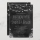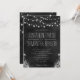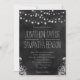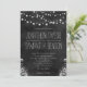 String of Lights Chalkboard © Sunny Mars Designs. Na moda, moderno, elegante, clássico, de moda, personalizável em chic, convites para casamento ocasionais de 5" x 7" com um belo design de quadro negro, com bolbos de cordas ou luzes de cordas penduradas acima com um design tropical floral abaixo.