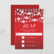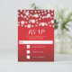 String de luzes e flocos de neve brancos RSVP de resposta/placa de resposta vermelha com casamento no inverno brilhante branco com flocos de neve brancos no topo sobre fundo de gradiente vermelho. Esta design de casamento moderna e moderna faz parte de um casamento ou coleção, é perfeitamente personalizável e é perfeita para um casamento de Natal de inverno. Alguns elementos são cortesia de vectorportal.com.
