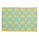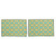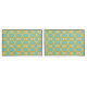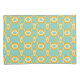 Stylized geometric pattern with bold orange hexagons and white details against a teal background, forming a repeating, symmetrical design.