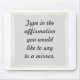Digite sua própria afirmação neste design de espelho divertido, impresso em um mouse pad, para ajudar a reforçar sua nova maneira de pensar.
