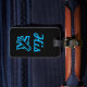 Sua etiqueta preta e azul de bagagem