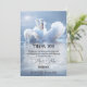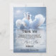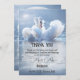 Cartões de agradecimentos de casamento com dois adoráveis cisnes num lago iluminado pelo sol. Na parte de trás está o espaço para a sua própria foto. Você também pode encontrar um modelo de código QR na parte traseira. É bom compartilhar as fotos com seus convidados.