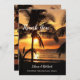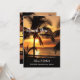 Cartões de agradecimentos romântico de casamento com um pôr do sol em uma praia tropical com palmeiras de um lado e sua foto favorita de casamento do outro. Belo depois de um casamento tropical ou de destino.