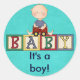 Deixado todos saiba com este design bonito, quando seu bebê é nascido ou isso que você adotou, e anuncie que "é um menino!". Você chanfrado psto estas etiquetas sobre o anúncio, chá de fraldas convida, etc. Lá os usos são infinitos.