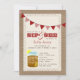 Um gole e veja um convite com um beliche vermelho no topo e uma ilustração de um jarro de maçã de chá gelado doce com limão no fundo esquerdo. O fundo na frente e atrás é inspirado em burlap. O recurso principal inspirou o design. Personalize o texto com suas informações.