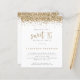 Um valor para o alternativo do ORÇAMENTO em tamanho menor de 4,5 x 5,6" de semirbrilho de 110 lbs, que é de espessura semelhante a um cartão postal (no entanto, não é adequado para uso como cartão postal). POR FAVOR, OBSERVE QUE HÁ UM convite por folha. Glitter Dourado do Orçamento 16. Convite. A brilho dourada falsa borda a parte superior de cada lado, e o doce 16 está em um script de estilo de escrita manual definido. Personalize facilmente o resto do texto para seus próprios detalhes. Você também pode alterar as cores do texto e do plano de fundo por meio da opção personalizar mais, se desejar.