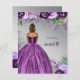 Glitter Orçamental Prateado Roxo Vestido Roxo Doce 16 Convite Aniversário. Pele Escura Cabelo Curto Marrom