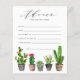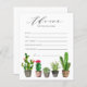 Peça aos hóspedes que deixem os seus conselhos e desejos com este cartão de aconselhamento personalizável. Apresenta suculentos e cactos com coloração aquosa. Personalize adicionando nomes. Este cartão de aviso de casamento do cacto está disponível em outros estoques de papelão.