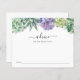 A placa de atividade do chá de panela apresenta suculências de aquarela. O cartão avisa os convidados a compartilhar conselhos para a noiva.