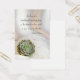 Practice some wedding kindness and give back on your big day when you arrange this donation card at your guests' garden party inspo marriage reception place setting. The pretty Green Succulent on White Wedding Charity Favor Card states that in lieu of a traditional party favor, a donation has been made in their name to charity. Customize it with the name of the favorite charity and personal names of the bride and groom. This classy custom natural wedding favor card features a digitally painted floral photograph of a green succulent plant with a white bridal veil and white satin background.
