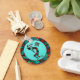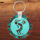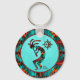 Este é um único "Um dos tipos" Chaveiro do sudoeste de Kokopelli! Ele apresenta um Kokopelli tocando flauta e dançando sob o sol em um fundo turquesa... cercado por uma borda sudoeste em Turquesa, Laranja e Preto! Design De Arte Original Pelo Artista Kerry Miller.