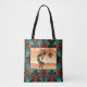 Este é um único "Um dos tipos" do sudoeste de Kokopelli Tote Bag! Ele apresenta um Kokopelli Sudoeste tocando a flauta e dançando debaixo do sol no deserto... com uma fronteira sudoeste em Turquesa, Laranja e Negro!