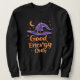 Mande sua magia interior com esta camisola de afirmação bruxa. Com um chapéu mágico de bruxas roxas contra a lua e as estrelas, e o slogan lúdico "Só Boa Energia", este design aconchegante é perfeito para o visto do Halloween.
