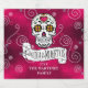 Um design de etiqueta colorido para o Dia das Festividades Mortas, com uma variedade de crânios decorativos de açúcar com sotaques de flores e espirais em um fundo rosa de cor vermelha de efeito texturizado. O banner branco, contendo o texto "Feliz Dia de los Muertos", é opcional e pode ser apagado para usar o rótulo em outras ocasiões. Procure ID725 para ver outras opções de cores e produtos com este padrão divertido.
