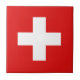 Este design consiste na bandeira suíça remodelada de forma inteligente para ajustado da superfície do azulejo quadrado. Um item decorativo e útil que daria um presente perfeito para aqueles que gostam de se lembrar da Suiça.